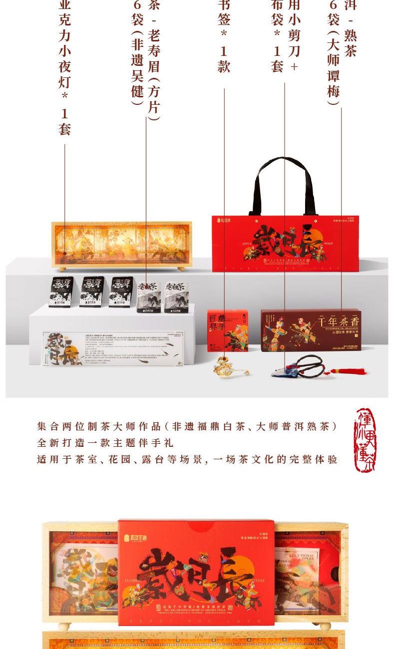 木制+亞克力小夜燈*1套 福鼎白茶.老壽眉(方片)5g*6袋(非遺吳?。?琺瑯書簽*1款 茶道專用小剪刀+吊墜+布袋*1套 云南普洱.熟茶5g*6袋(大師譚梅)